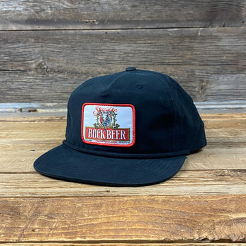 A lasered leather patch with our logo on a chip and grey trucker hat. Finished...